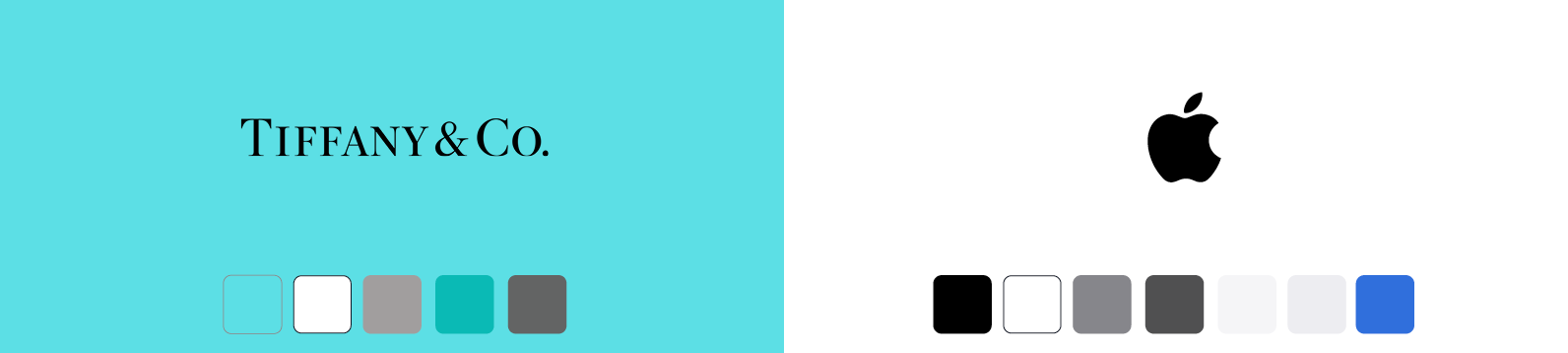 Tiffany crée une reconnaissance immédiate et émotionnelle avec une couleur signature forte, tandis qu'Apple privilégie la sobriété de son identité visuelle pour affirmer sa modernité et sa quête d’excellence technologique.